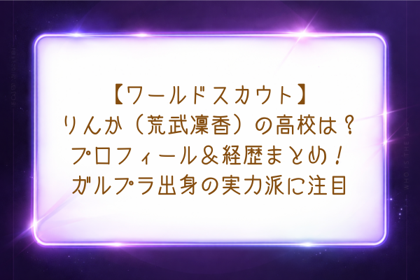 【ワールドスカウト】りんか(荒武凜香)の高校は?プロフィール&経歴まとめ!ガルプラ出身の実力派に注目